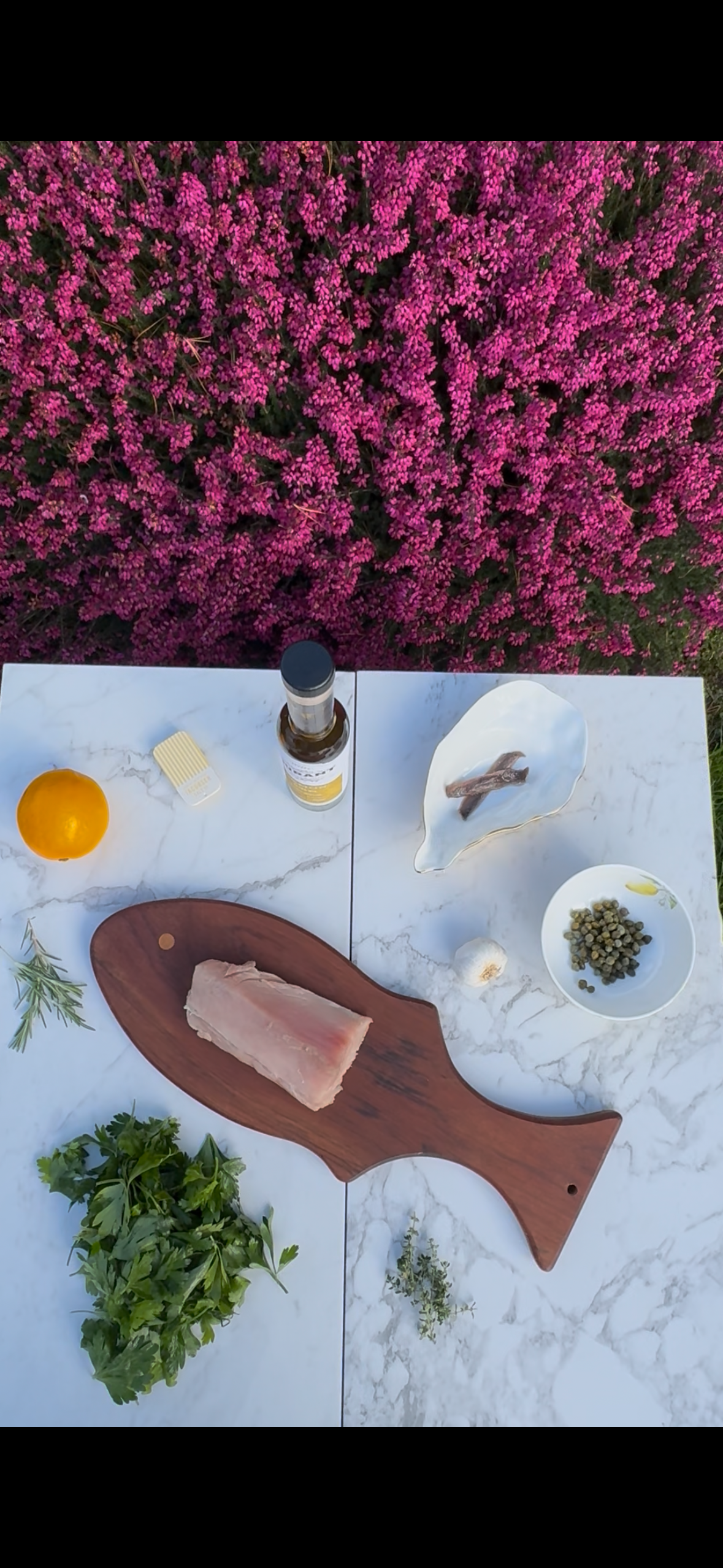 Plate the Albacore pieces, then top with a generous swirl of the Salsa Verde.